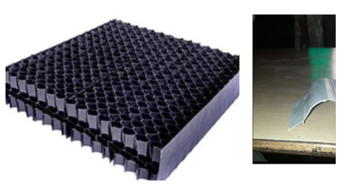 Drift Eliminators are designed to capture large water droplets caught in the cooling tower stream. The eliminators prevent the water droplets and mist from escaping the cooling tower.